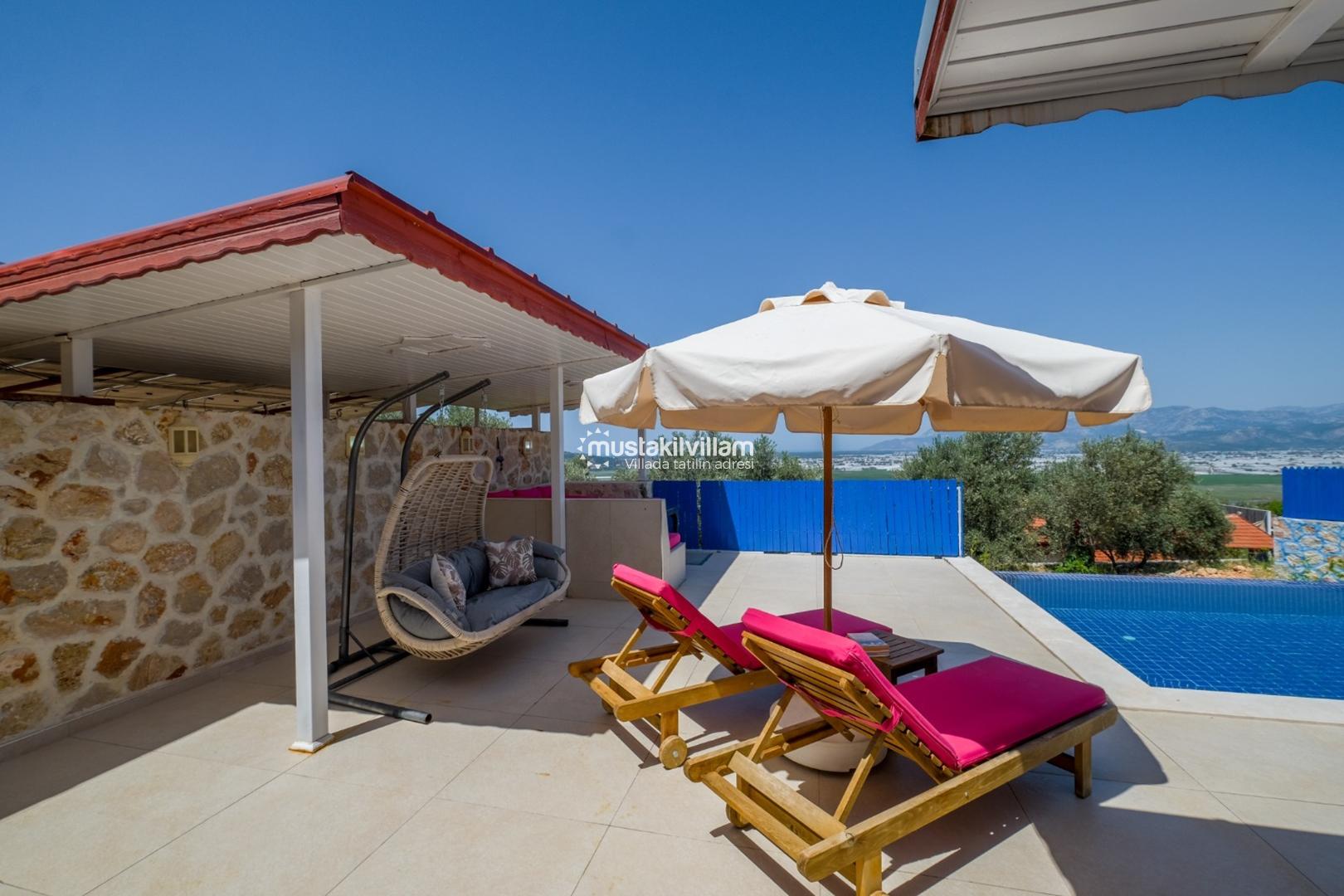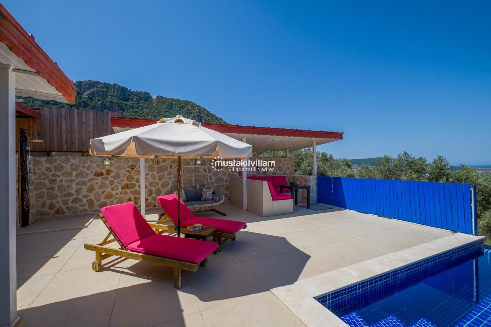 Villa Dream Kalkan 3’ün en dikkat çeken özelliklerinden biri korunaklı özel havuz alanıdır. Gözlerden uzak tasarımı ile mahremiyet ön plandadır ve romantik tatil için idealdir.