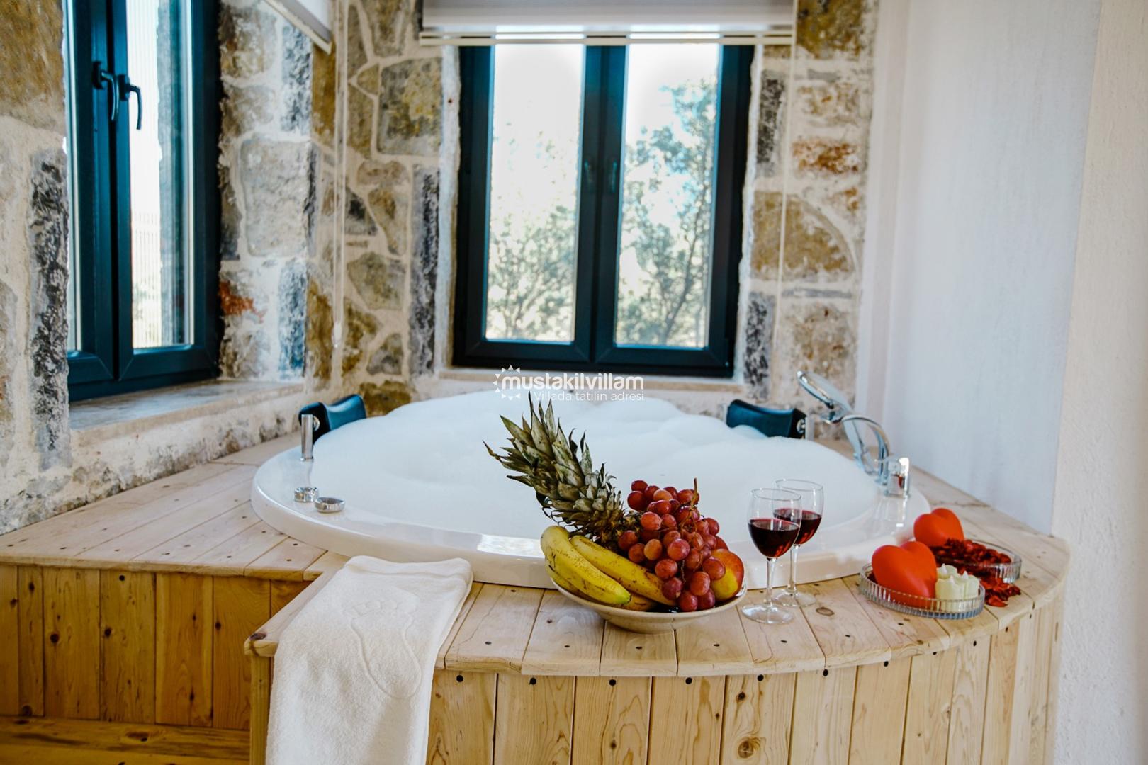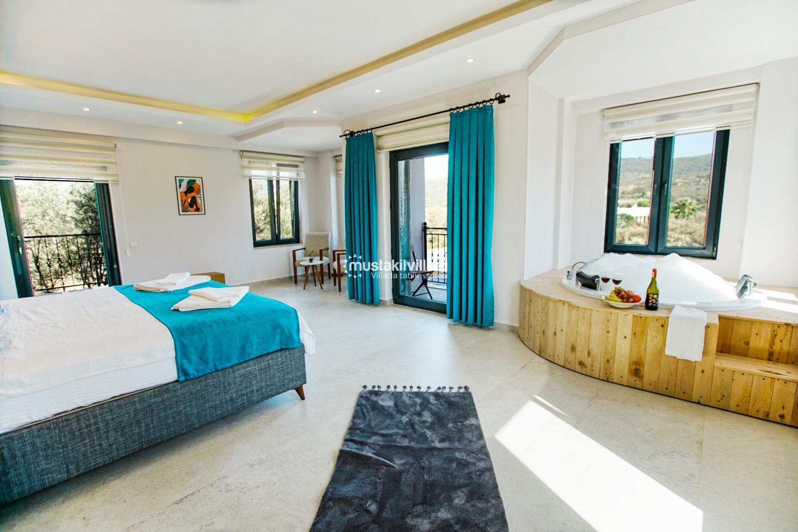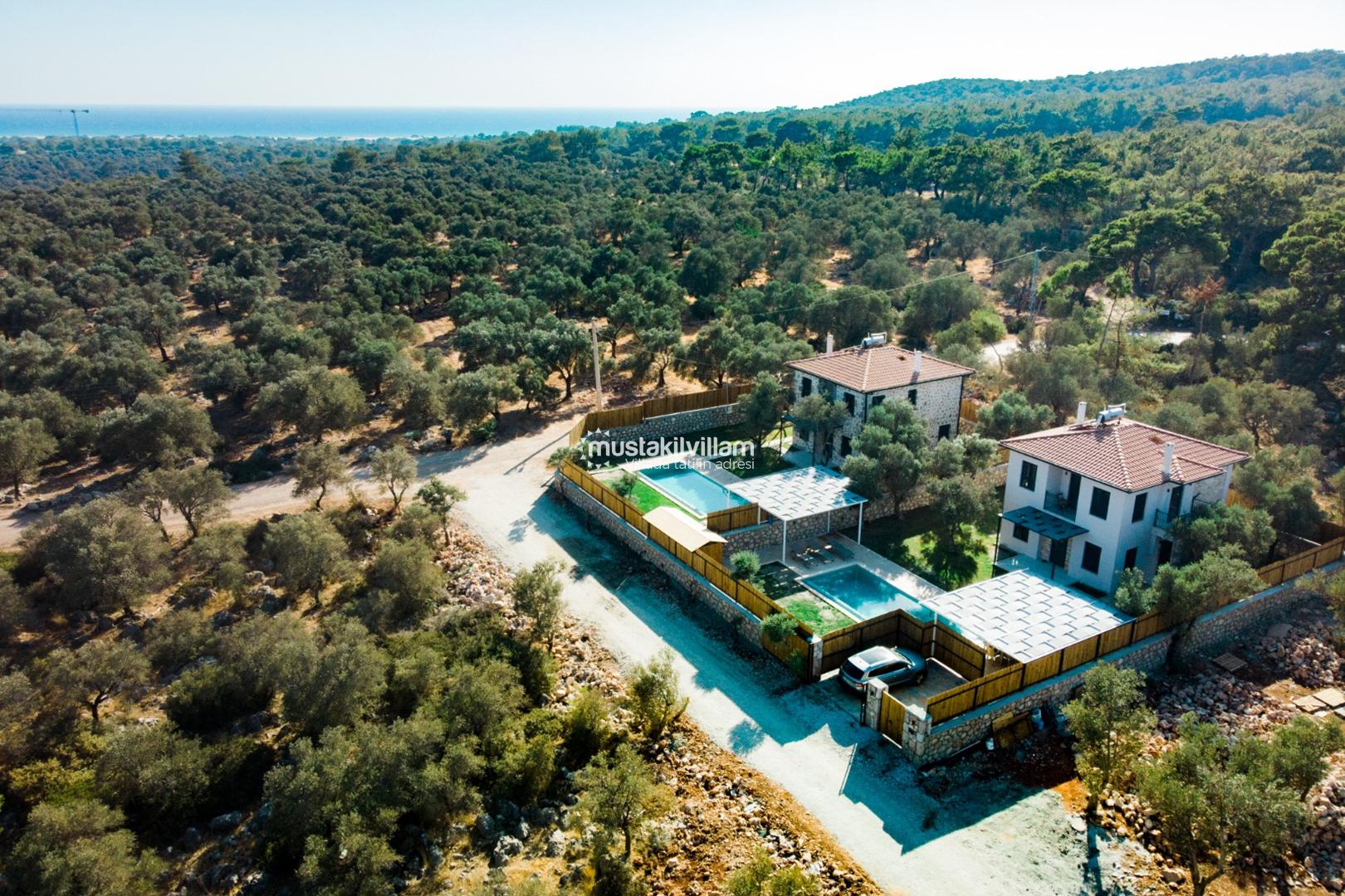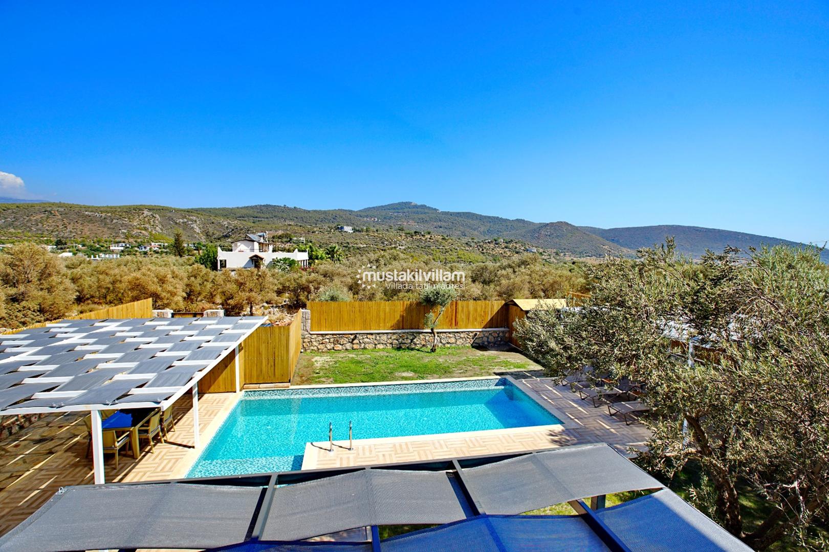 Korunaklı havuz sayesinde dışarıdan görünmeden özgürce tatilin keyfini çıkarabilirsiniz. Denize uzaklığı yaklaşık 2 km olan villa, hem deniz hem de doğa ile iç içe bir tatil sunar.