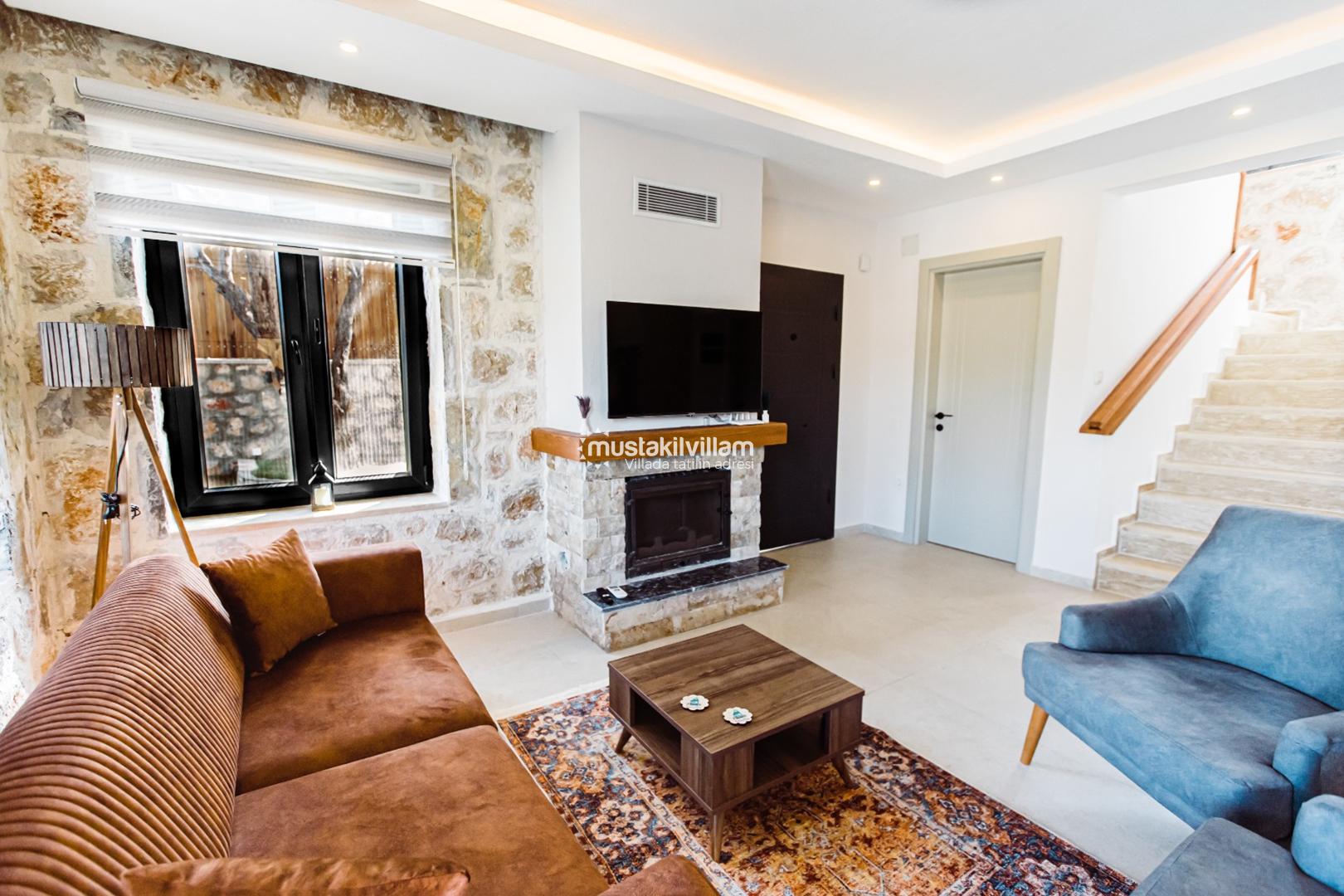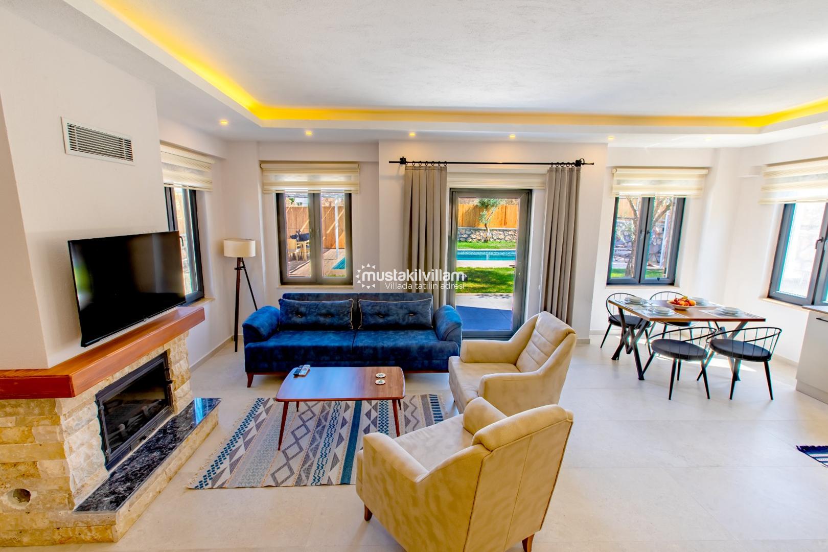 Villa Ersan 2’nin salonu, tatil boyunca hem dinlenme hem de eğlence için idealdir: