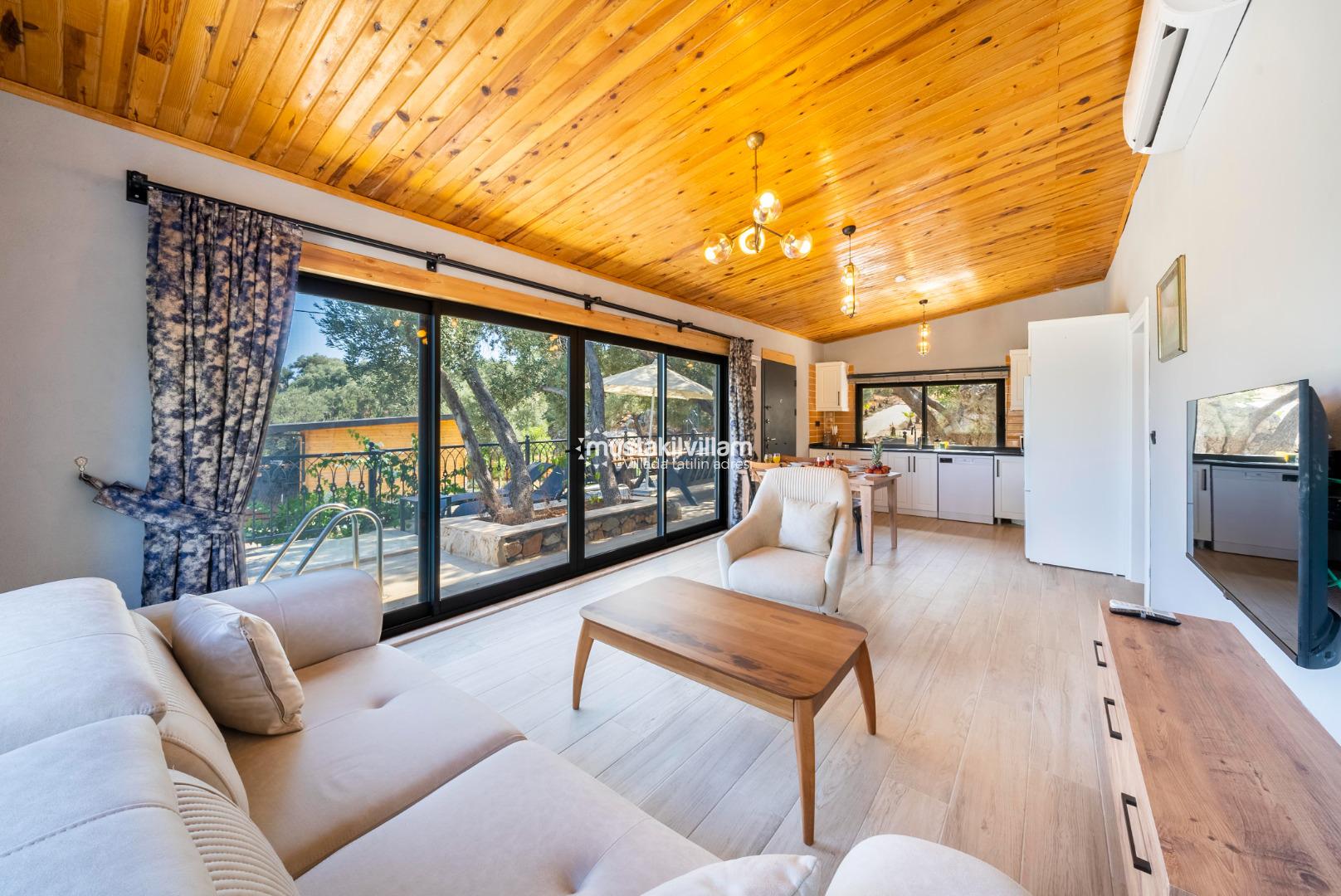 Konforlu oturma alanı, klima ve televizyon gibi donanımlar sayesinde hem dinlenebilir hem de keyifli vakit geçirebilirsiniz. Villa Olive, hem estetik hem de işlevsellik açısından beklentilerinizi karşılayacak şekilde dizayn edilmiştir.