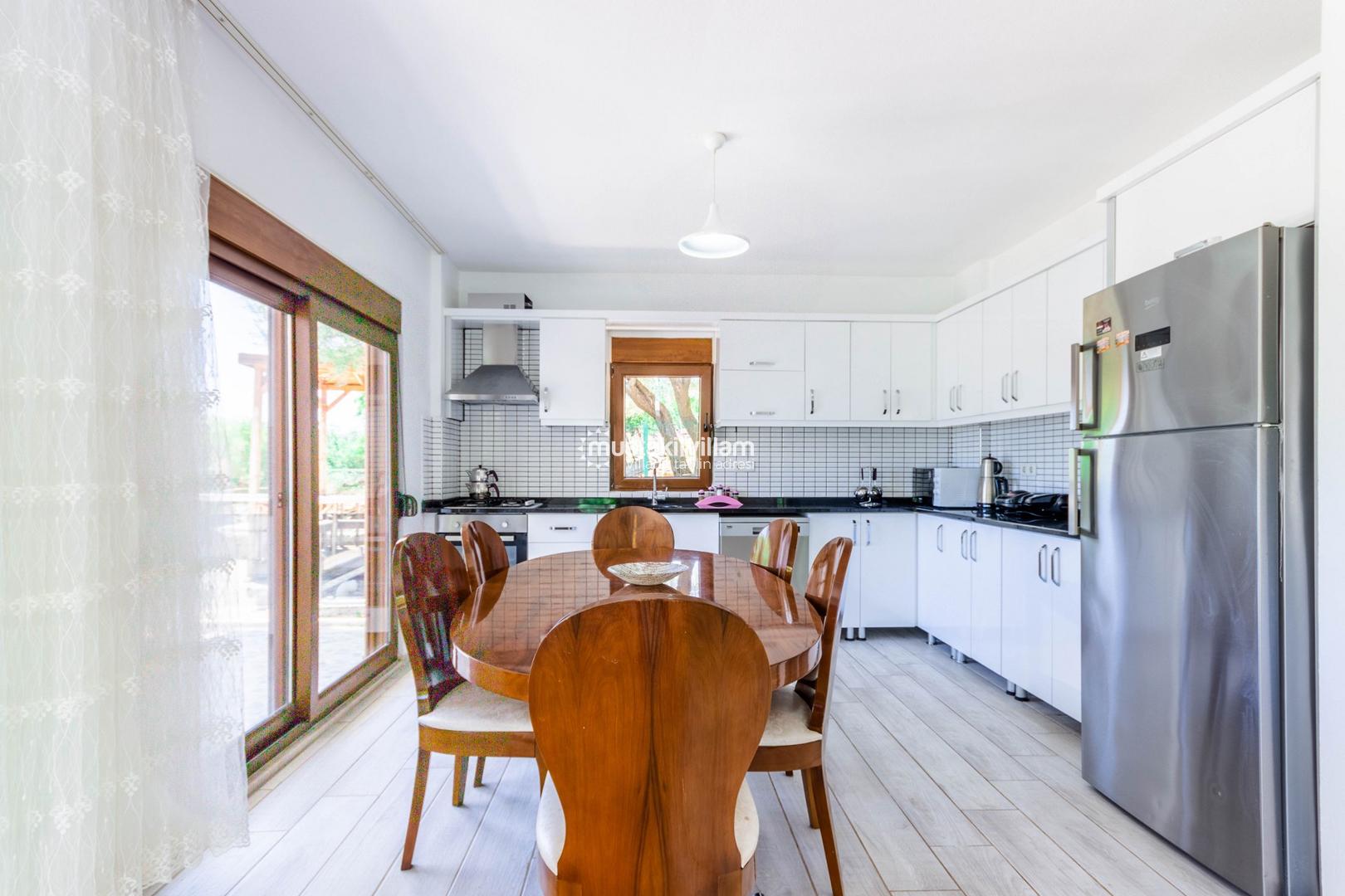 Villa içerisinde yer alan mutfak, tüm ihtiyaçlara cevap verecek şekilde donatılmıştır.