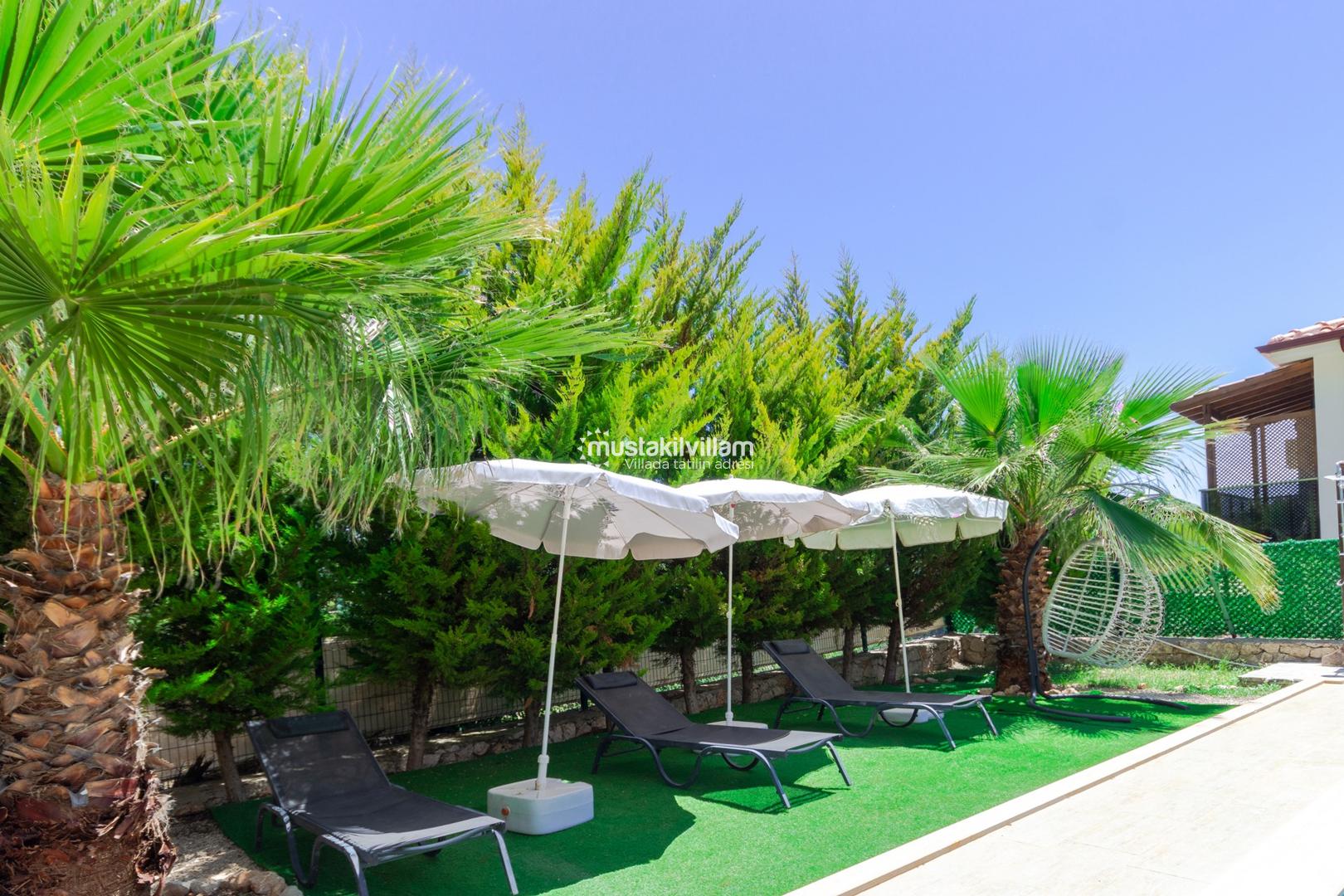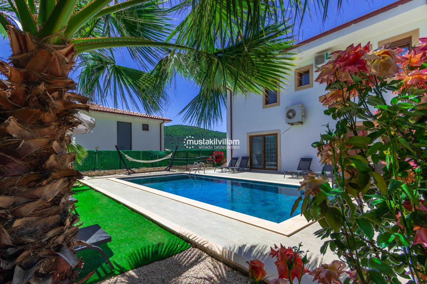 Villa Son Yaz 1’in en önemli avantajlarından biri, dışarıdan görünmeyen korunaklı özel havuzudur.
