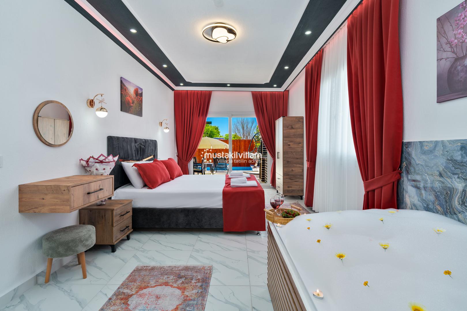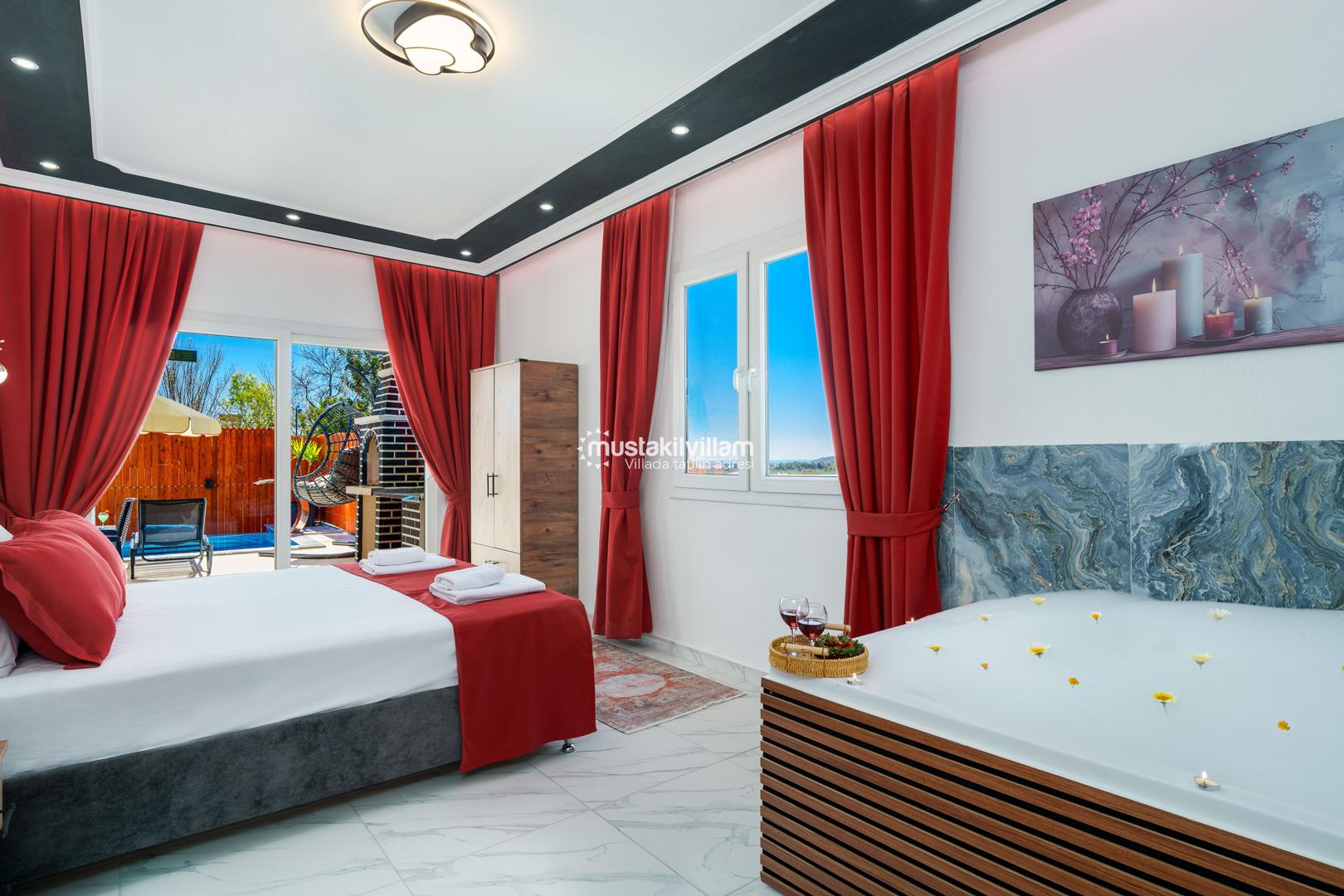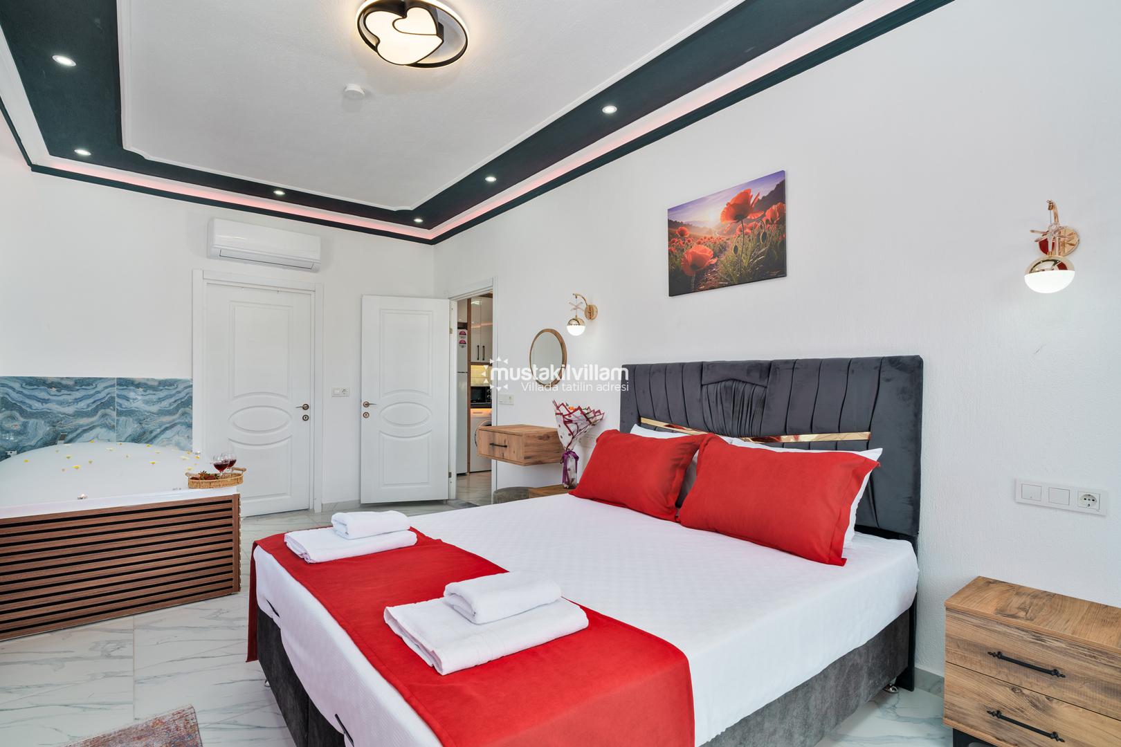 Ana yatak odasında bulunan jakuzi, özellikle balayı çiftleri için romantik ve dinlendirici bir deneyim sunar. Tüm odalarda bulunan klima ve modern mobilyalar, tatil boyunca maksimum konfor sağlar.