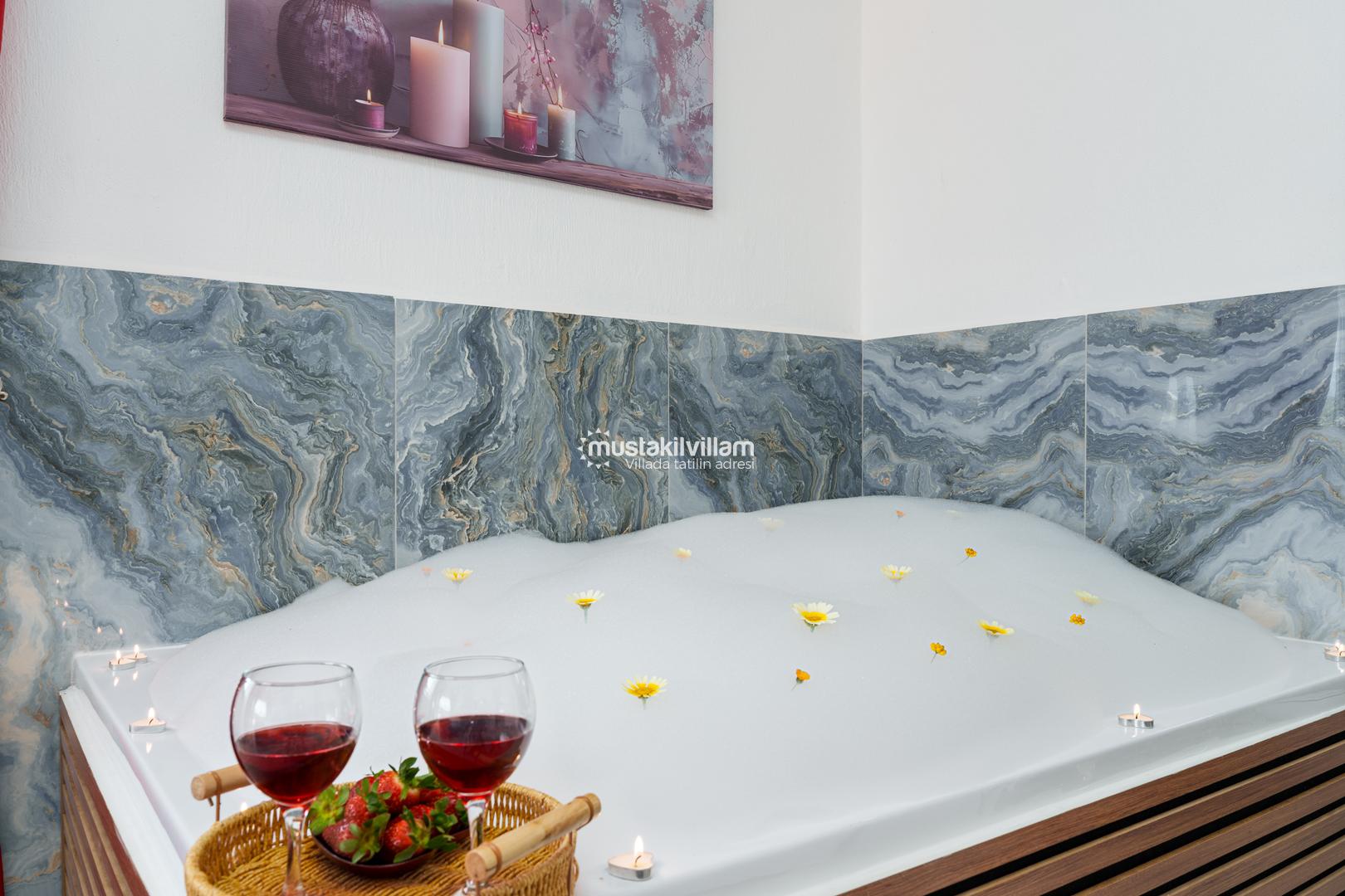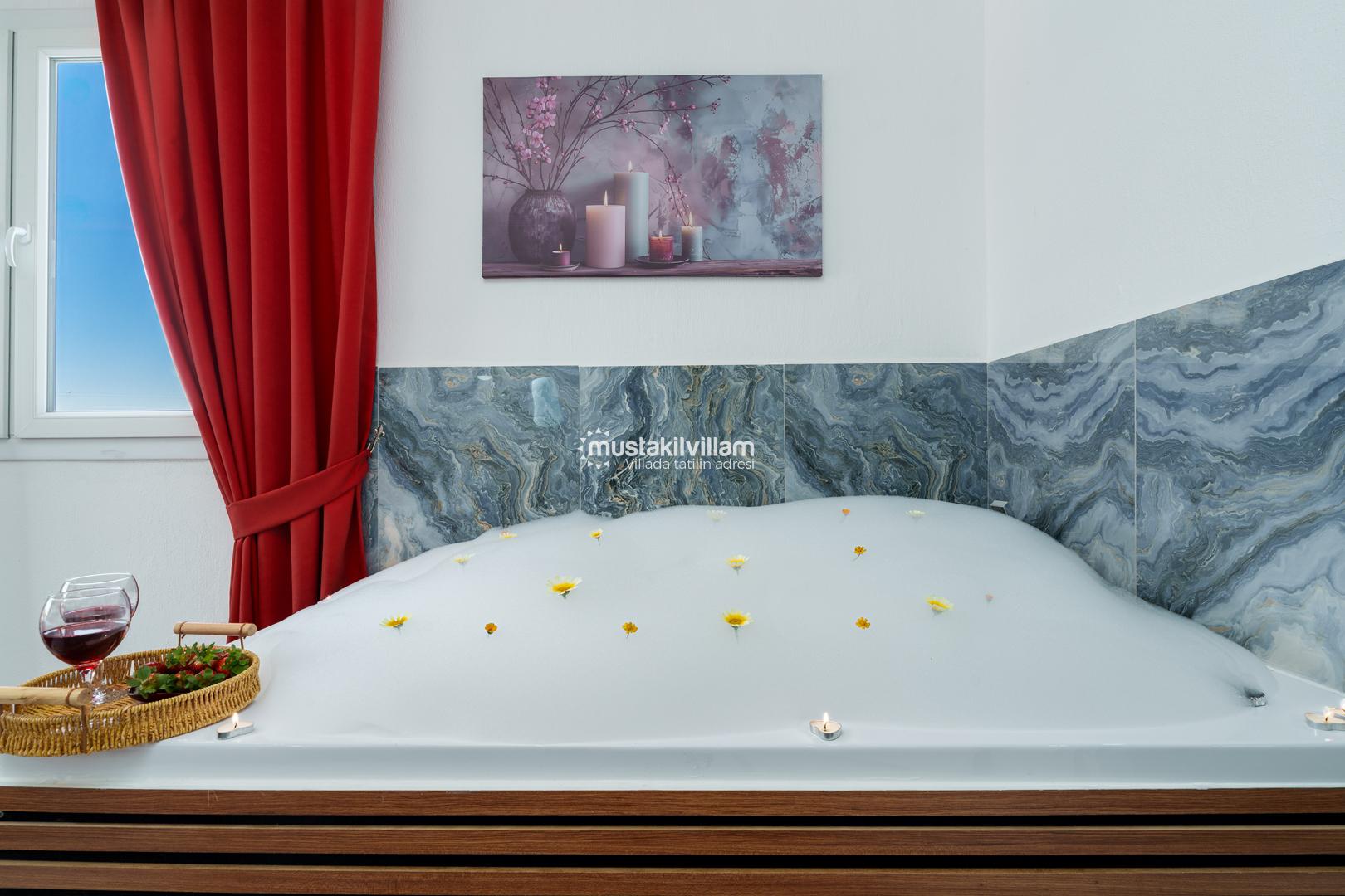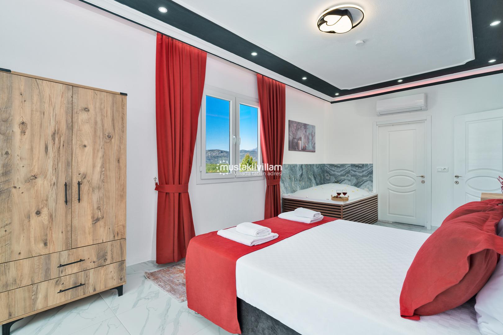 Ana yatak odasında bulunan jakuzi, özellikle balayı çiftleri için romantik ve dinlendirici bir deneyim sunar. Tüm odalarda bulunan klima ve modern mobilyalar, tatil boyunca maksimum konfor sağlar.