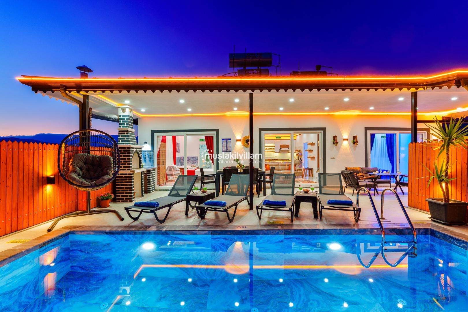 Villa Zirvem, Kalkan Çavdır’da hem lüks hem de doğa ile iç içe bir tatil deneyimi sunar. Korunaklı havuzu sayesinde mahremiyet arayan misafirler için ideal bir seçenek olurken, jakuzisi ile konfor ve keyfi bir arada sunar.