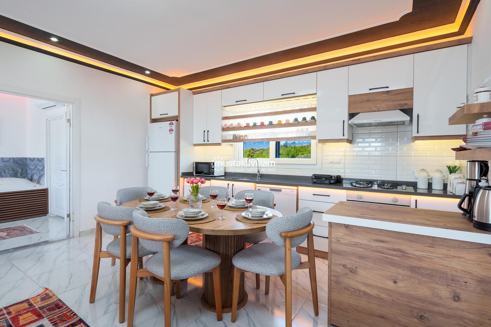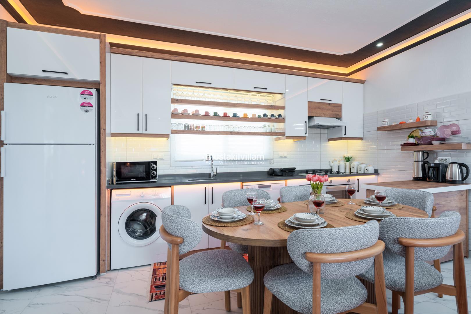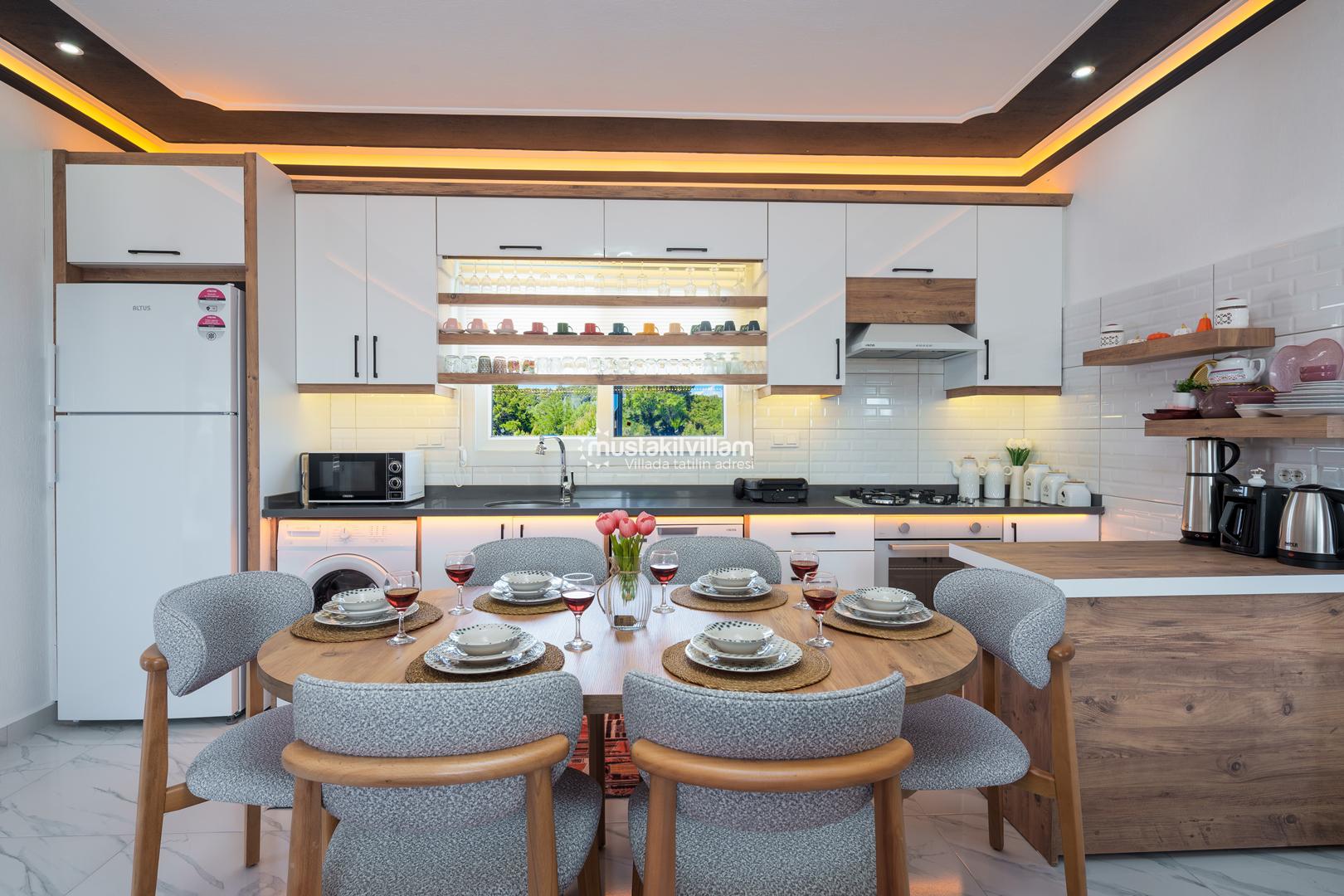 Villa Zirvem’de bulunan Amerikan mutfak, modern yapısı ve tam donanımı ile dikkat çeker: